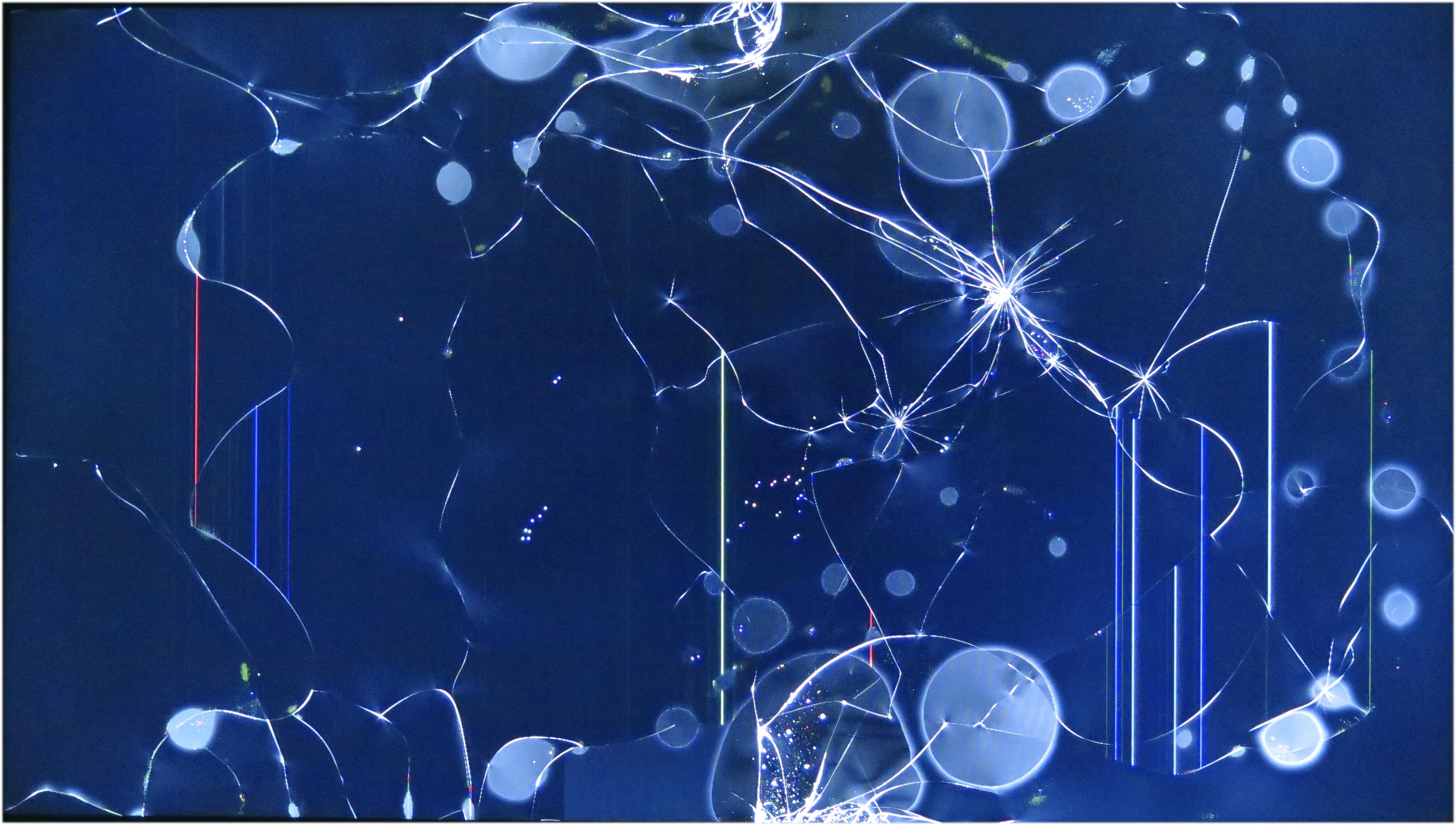 the degradations he applies beforehand to the screens he uses generate evolutionary images due to the gradual disappearance of the physical qualities of the screen and of the cathodes it contains. A paradoxical phenomenon, since the progressive death of the screen gives rise to new images, in an almost permanent recycling movement that lasts until either the power or the screen is turned off.