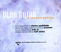 On D-Construction, French avant-rock outfit Ulan Bator offers up its catalog for dissection and resection at the hands of four sampling superstars. Otomo Yoshihide helps himself to two Ulan Bator tracks >>>