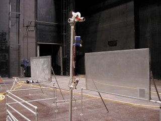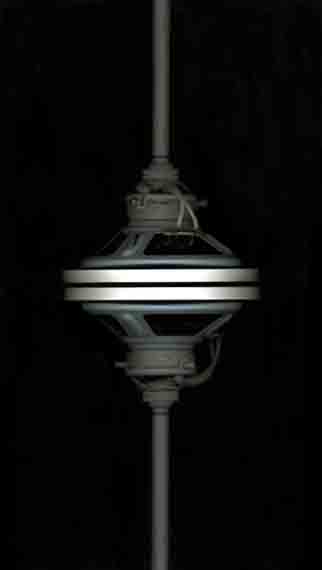 the ceiling , and the other rests on the floor. One loudspeaker is used