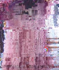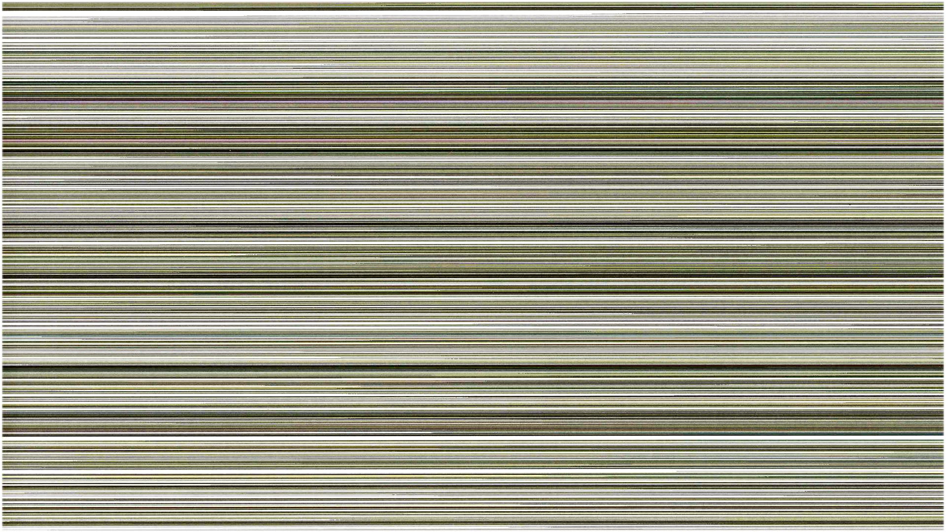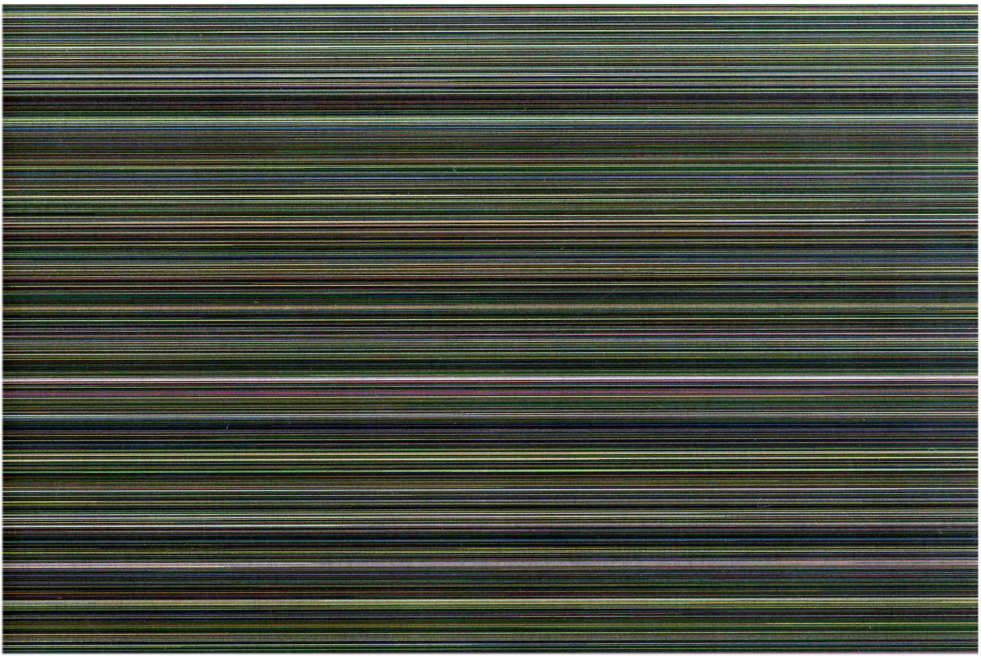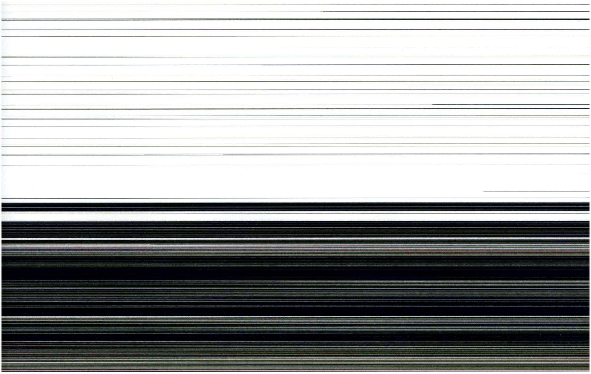From primitive gestures, eRikm makes a laser photocopier motherboard bug, producing a thin streaked colour gradation on the blank page. Mistakes, tremors, and shuffle code entering generate the incident, converting the original picture into stretched calculation points. A framework appears : a set of lines containing information from an unknown and vanished source. Its reproduction ad infinitum screens the last visible tracks until they almost disappear.