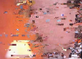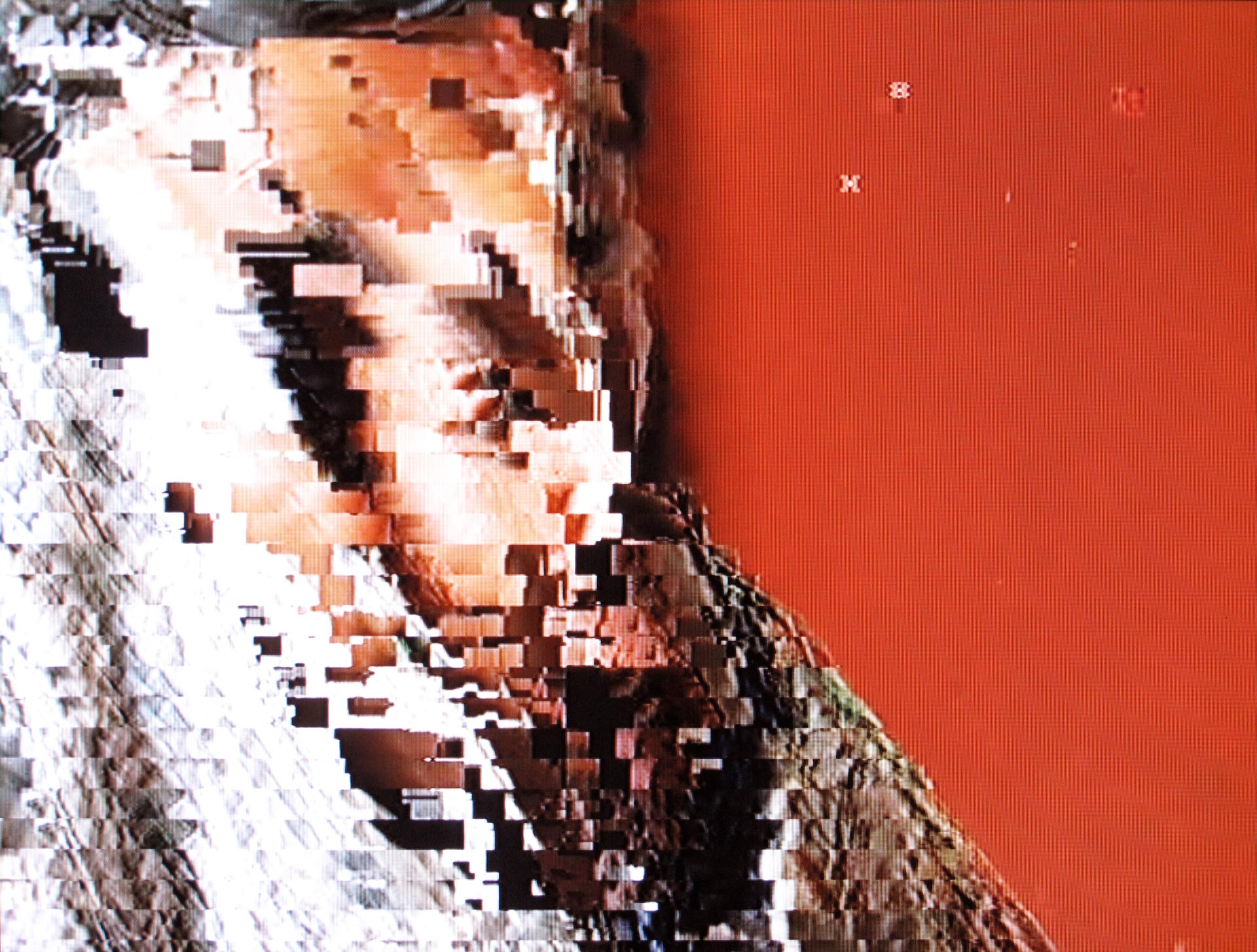Short-circuits make the system fail, throwing into the source, until TV screen crashes. The image, lived up by the distortion takes pictorial forms and colours.