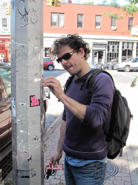 A sequence of street stickers (NYC, Berlin, Praha, Montreal, Tokyo...