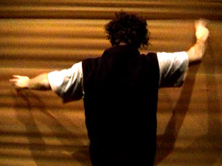 From sound and visual found footage worked again - frame by frame - (All the images are opticaly printed, processed, tortured in the workshop MTK),we confront these elements in a game of improvisation (we intervene on all the dimensions of the process of projection : masking, overprint, variation of the luminous intensity, the speed of scrolling of the film, the size( of the frame of the image, synchronous sound or not) in a way to develop a suspense, a film archetype if there is, in the form of abstract tension, of story for the eye, with its variations of movements and its apocalyptic skids in hyperscope .