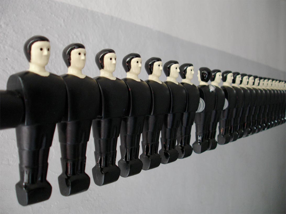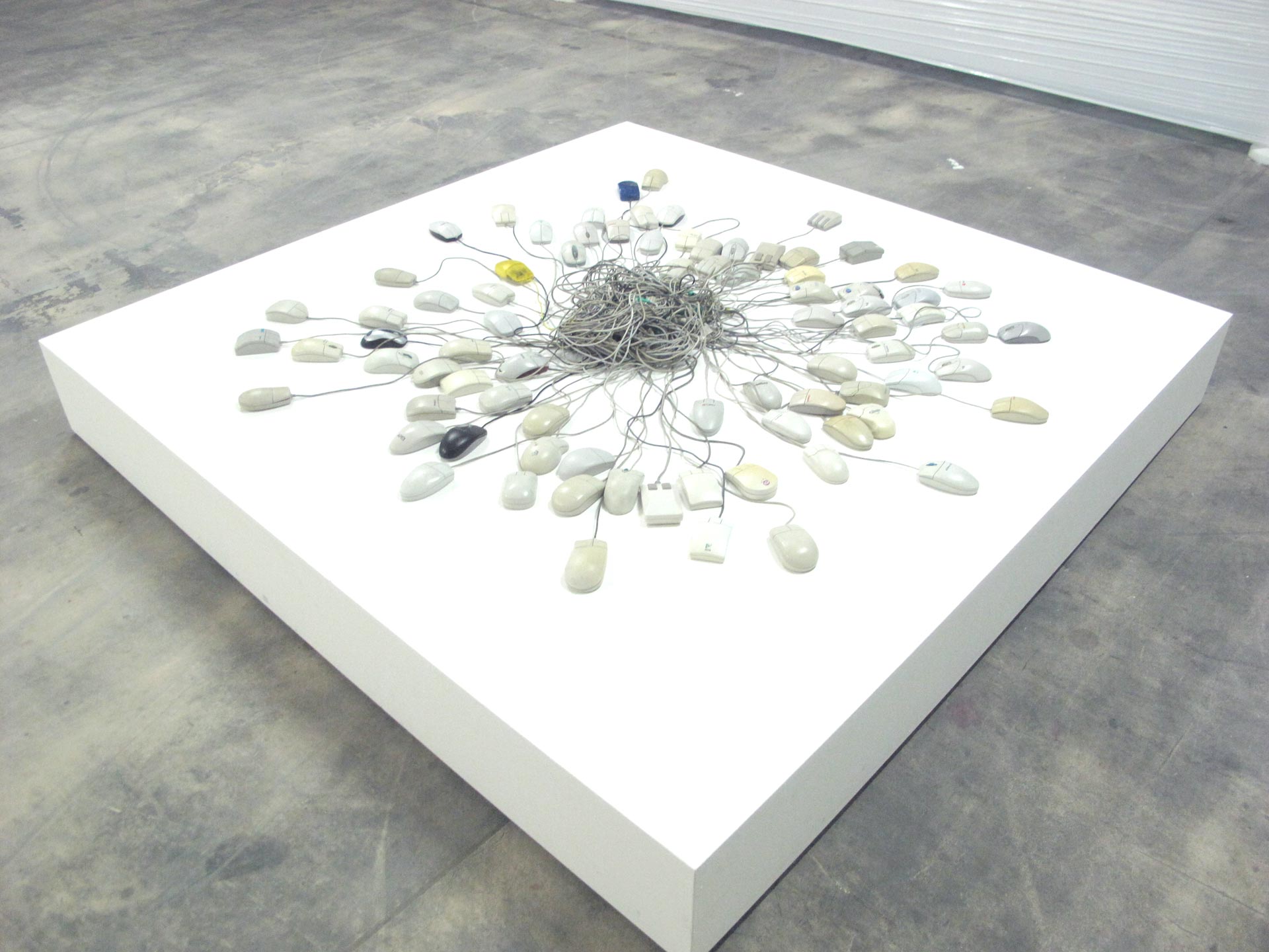 A zoological phenomenon unexplained until now, the “king rats” is a bundle of rats whose tails are tied up one to the other, tangled together in a sticky gangue of hairs and faeces, Like a kind of mutant matrix, it is fed by its fellow creatures, on whom its survival depends. Connection-web-contamination… It is the idea of a latent virus announcing the beginnings of a disaster. A sprawling phenomenon here treated with humour, where the medieval epidemic rubs elbows with the computer plague in a hoax way.