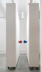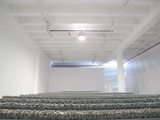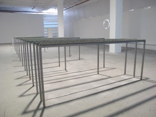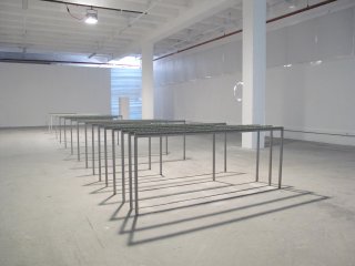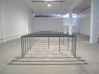 Stocking of fragmentary data of a passed history devoted to art, the slices recall the graphic bars compacted into hard disks, getting rid of its obsolete memories as time goes by. The rhythmic formulas cut the space into virtual continuums, as a kind of digital landscape to monochrome variations.