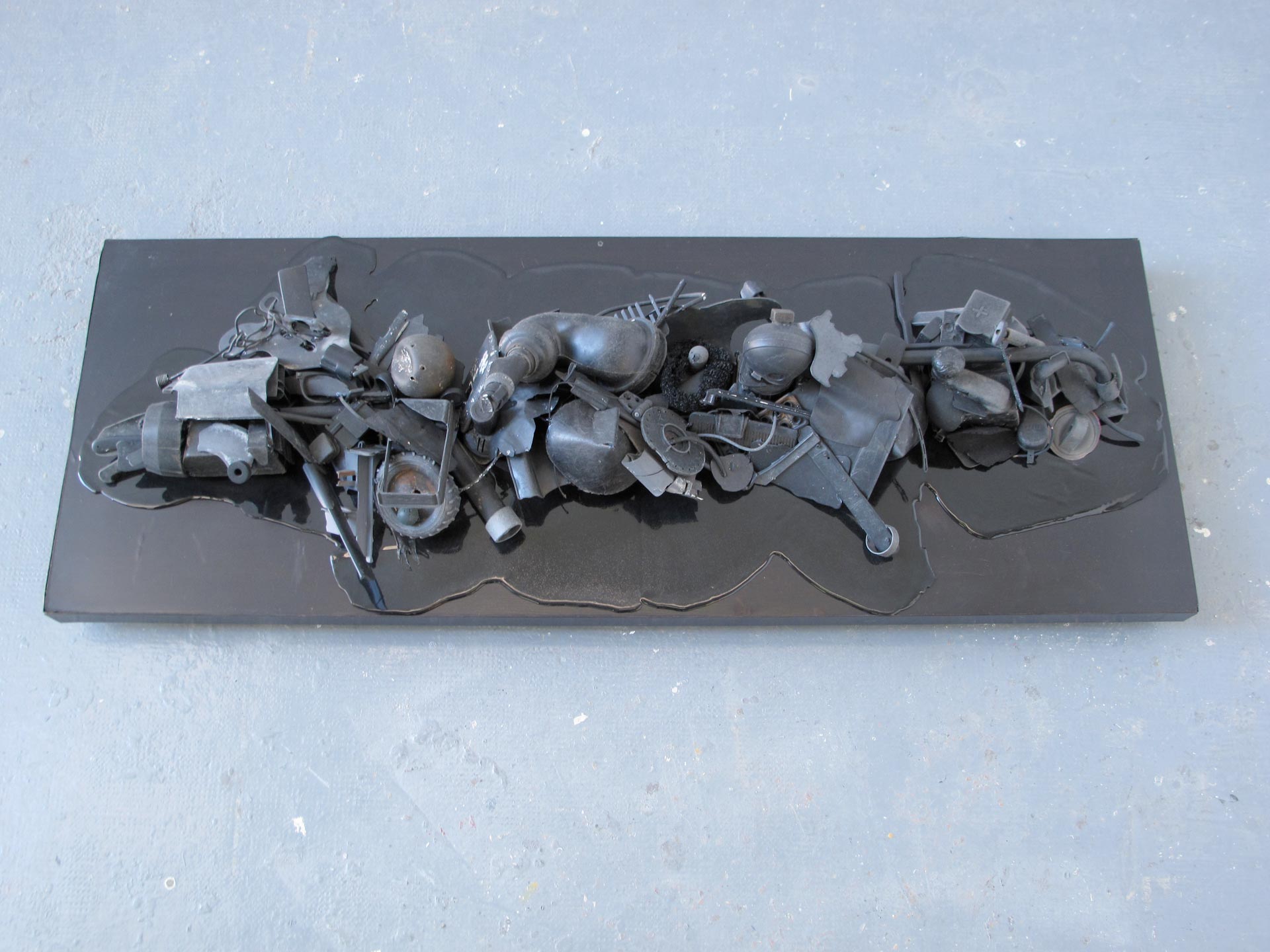 Black plastic found object, Epoxyde, 150 cm