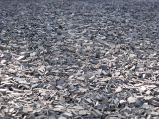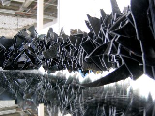 Fragments of 444 medium vinyl records, mirror, wire rope